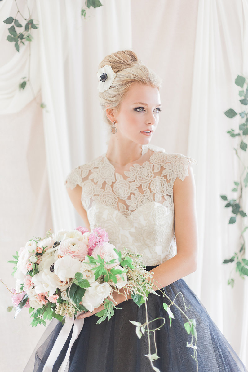 There is nothing quite like a creative shoot to really get my juices flowing & create for my own pleasure and to bring a vision to life! An early spring day filled with soft light and pretty details with Jennie from A Divine Affair bringing everything together so beautifully! The flowers captured the lovely details beautifully with a collection of blush & soft pink hues, ivories and interesting foliages & textures to really set the tone for the day especially along side the black & mixed metal detailing. Anemone, Italian Ranunculus, Garden Roses, Pieris, Azalea, Spray Roses, Hyacinth and others tucked in between along with Grape Leaf ivy used to drape & ramble around the details. Enjoy this spring goodness & all the fine details curated here captured by Gemini Photography!