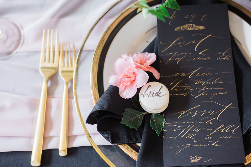 Photographer: Gemini Photography | Planner: A Divine Affair | Florist: Fleurish Design Studio | Venue: The Cellar at The Old Winery Restaurant | Calligraphy: Corsivo Calligraphy | Hair & Makeup: Allure Hair & Make up | Dress: Langlois Brides | Linen & Chairs: Details Chair Couture & Simply Beautiful Decor | Jewelry: Kavar Jewellers | Cake & Sweets: Sweet Celebrations | Model: Rebecca Szambor